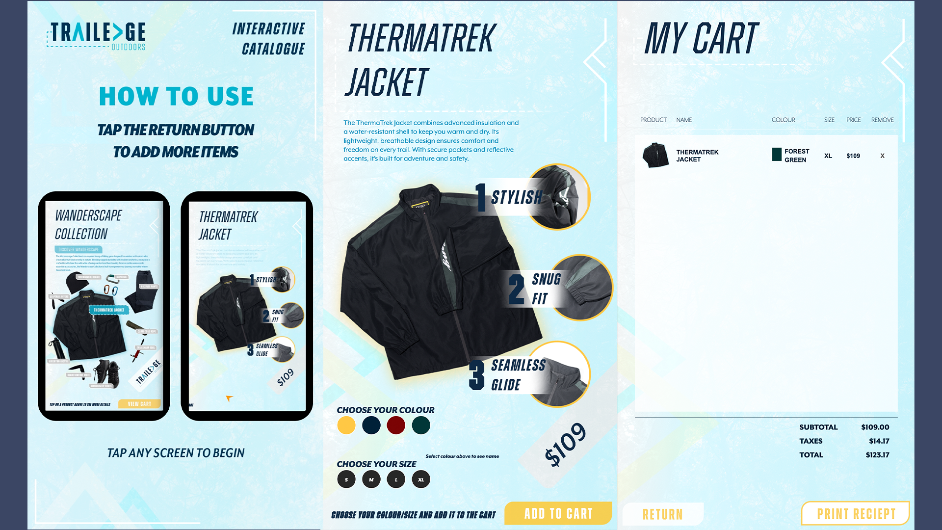 Finally, I reviewed the kiosk experience, testing motion activation, touch interactions, and visual consistency across both apps. Iterating on design details, animations, and transitions helped ensure a polished, engaging, and functional retail installation that effectively showcased the brand and offered a seamless, interactive user experience.
